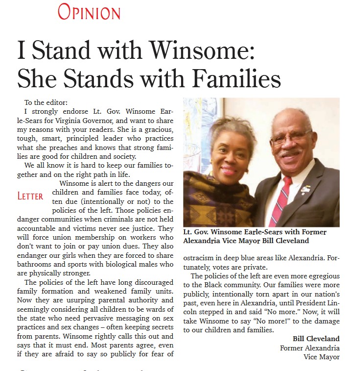 A hearty congratulations to Lt. Governor Winsome Earle-Sears on her outstanding debate performance. Earle-Sears was the clear winner of Thursday's debate and was relentless in trying to pin her opponent…